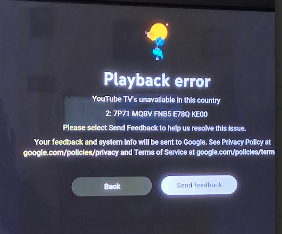 Please help, "video can not load" on all youtube tv content (Live, Library etc). The tiles and the guide load, even a progress bar on the default program tile works.